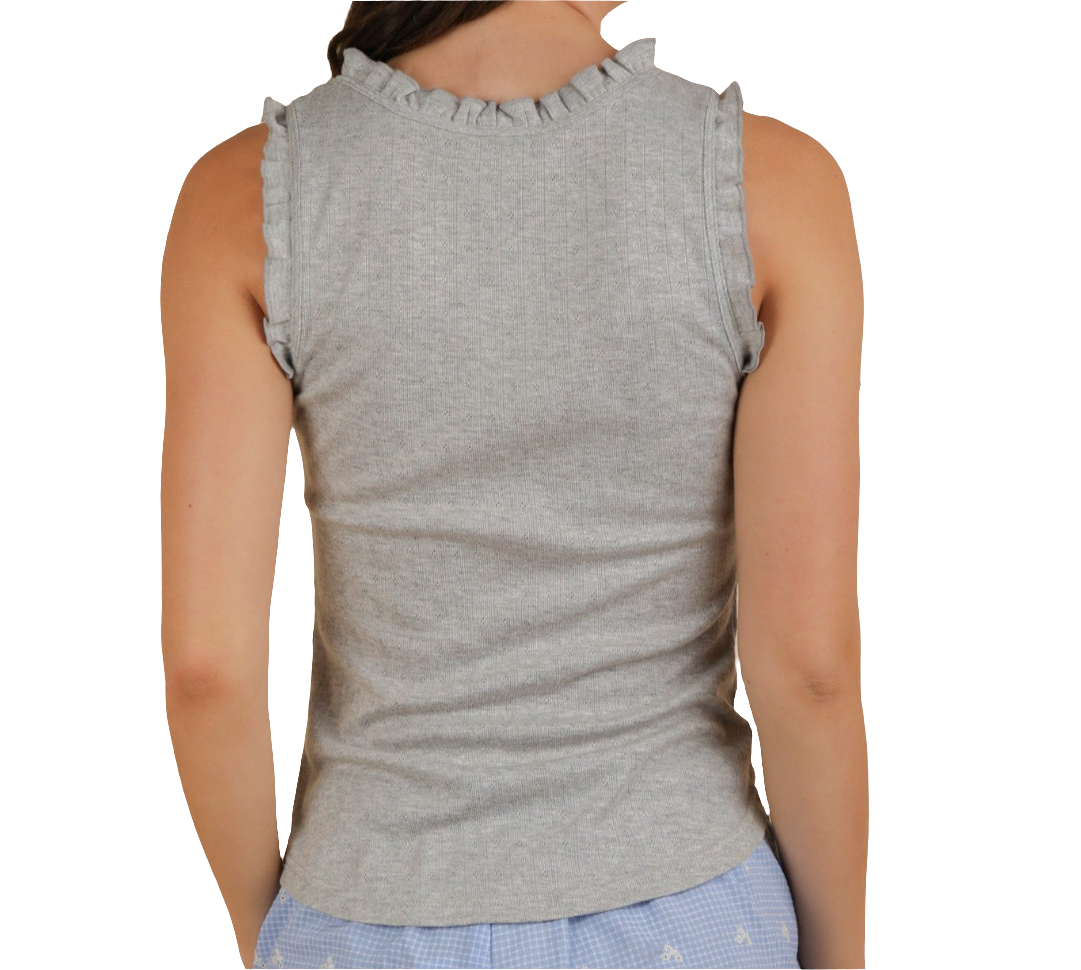 Bow Trim Ruffled Knit Gray Tank Top - S M L