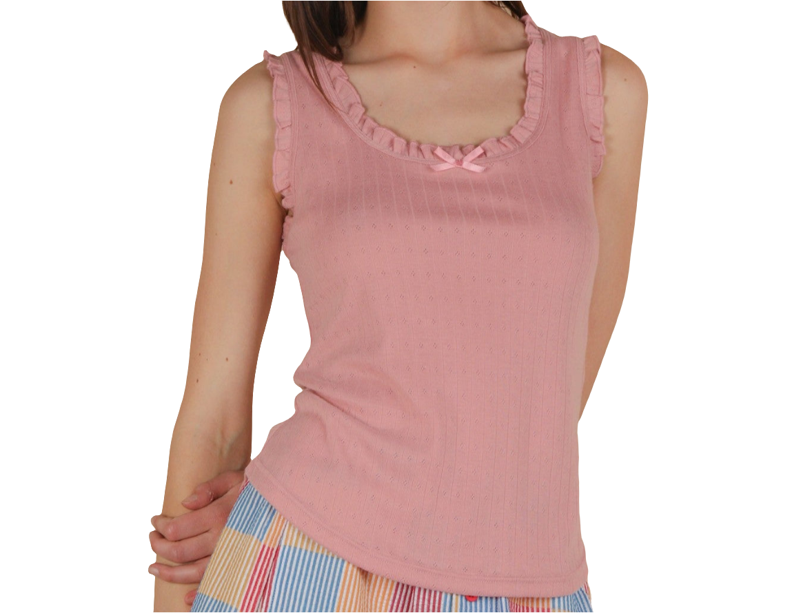 Bow Trim Ruffled Knit Pink Tank Top - S M L