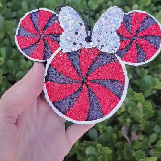 Candy Swirl Mouse With Glitter Bow Freshie - Red & Black