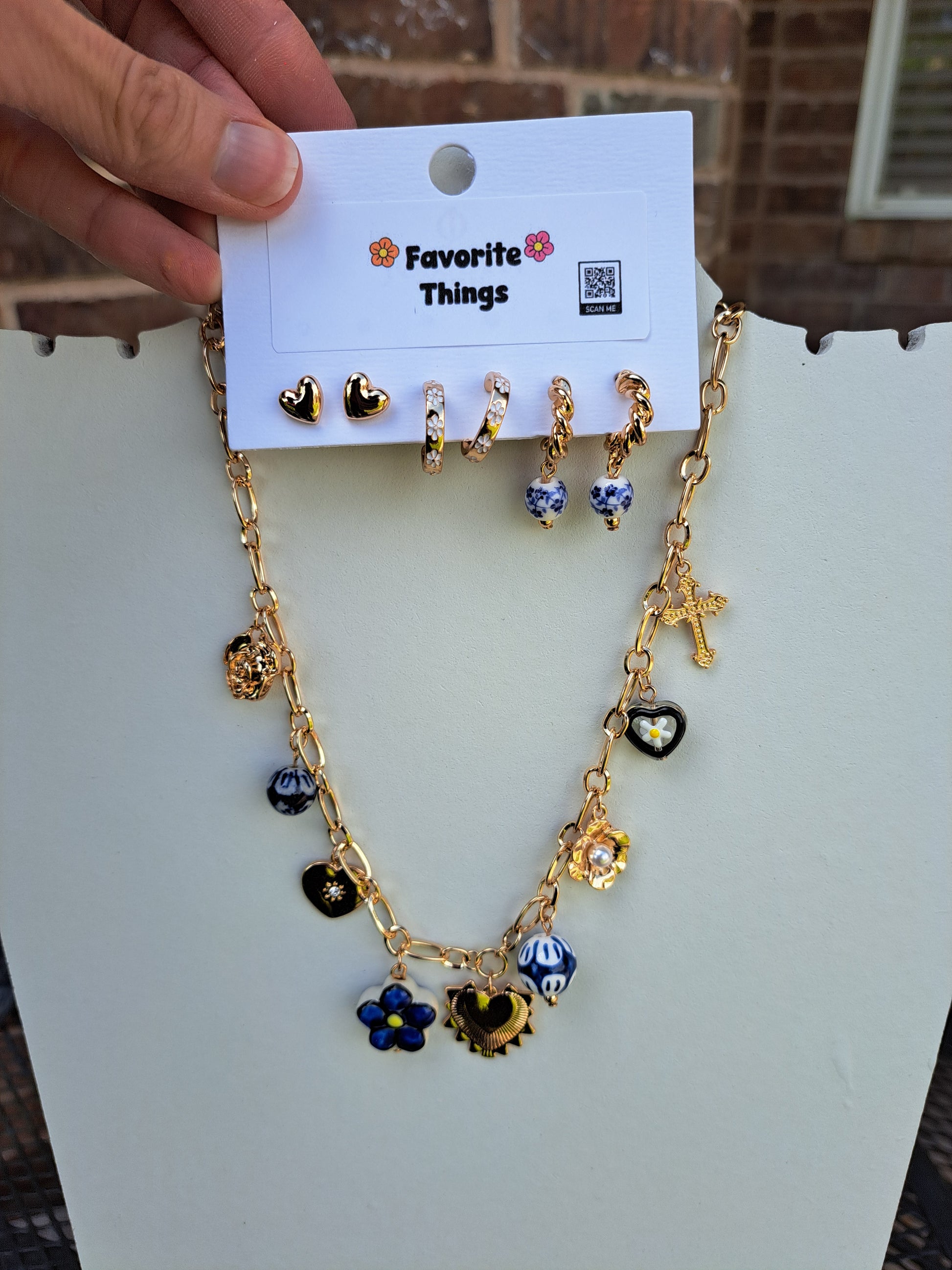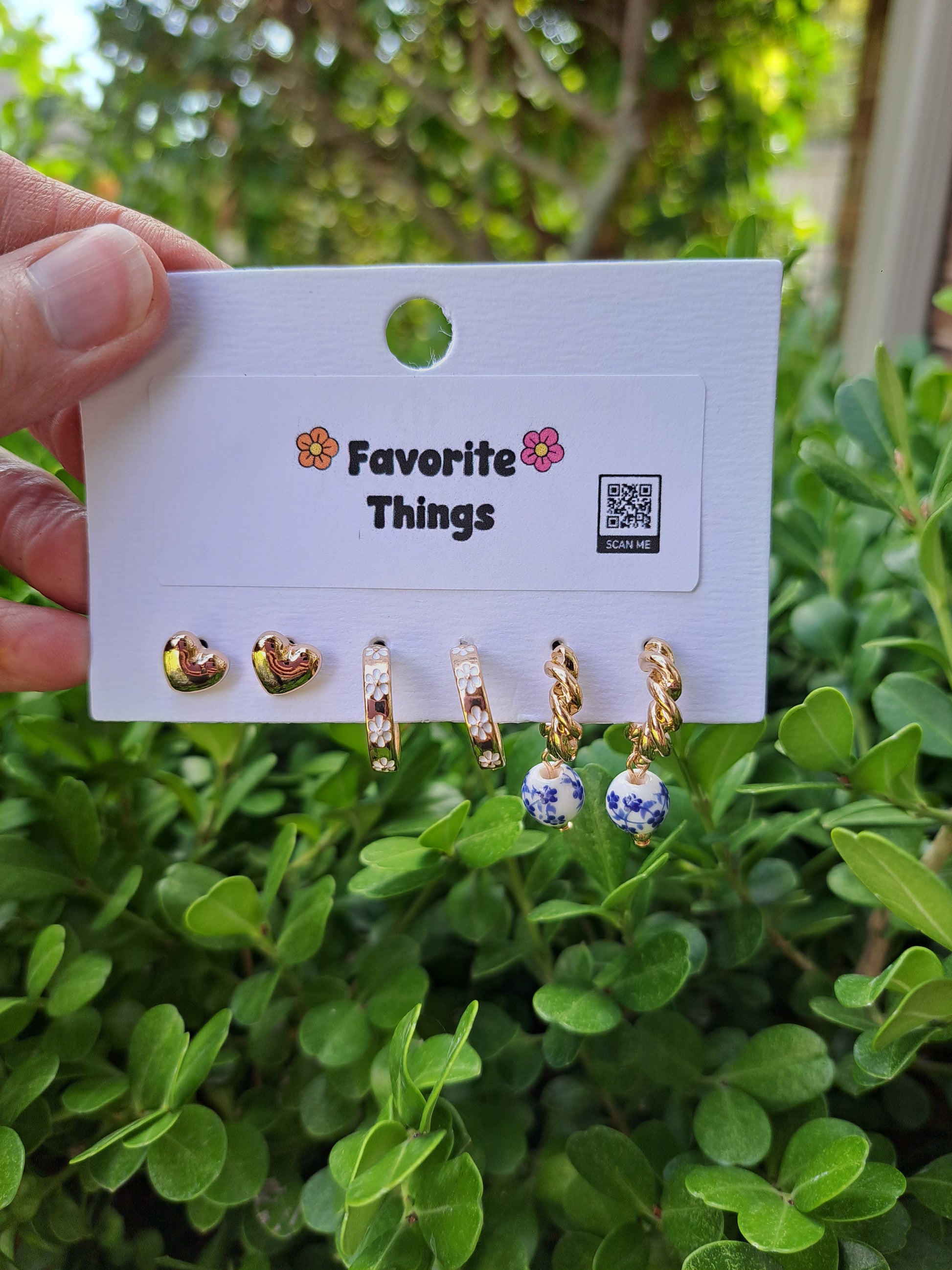 Vintage Ceramic Porcelain Trio Earrings - Hoops and Hearts