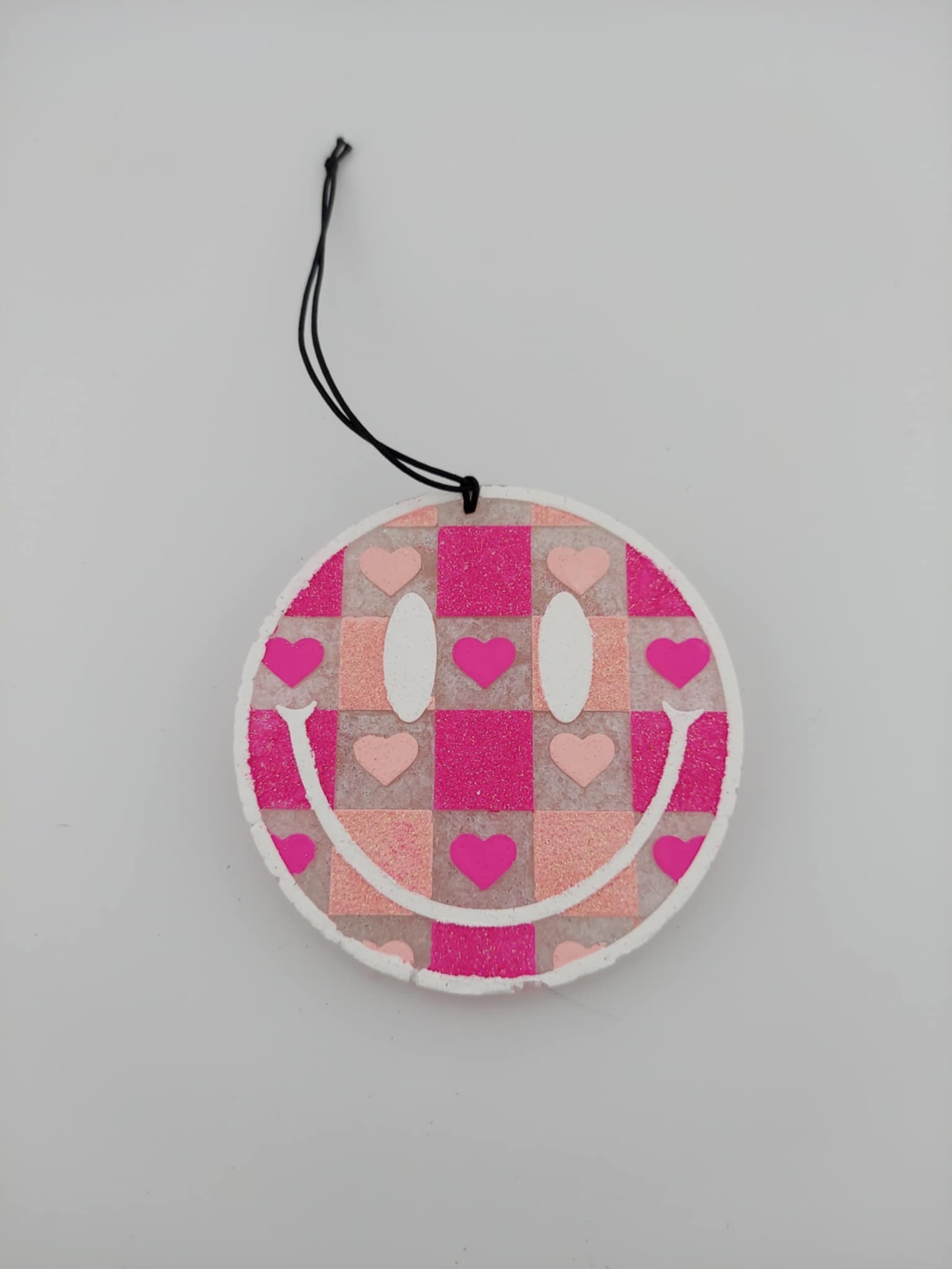 Checkered Heart Smiley - Pink and White