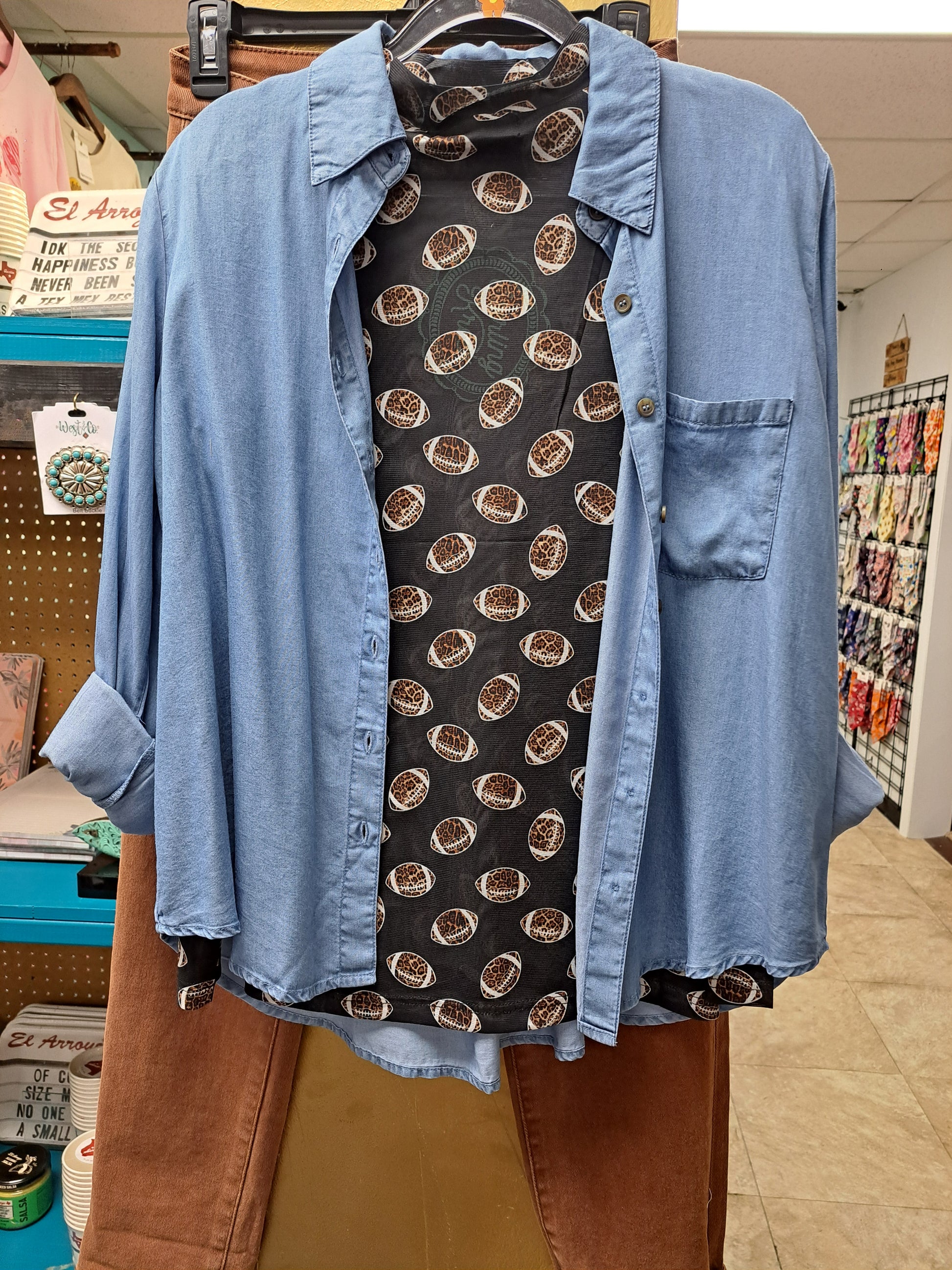 Leopard Football Black Mesh Top S XL 3X