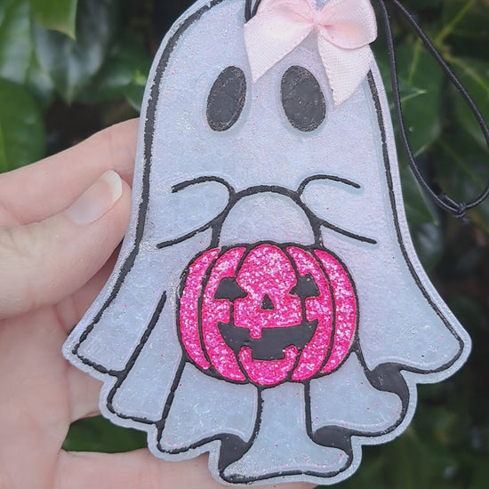 Ghost With Pink Pumpkin Freshie - Air Freshener